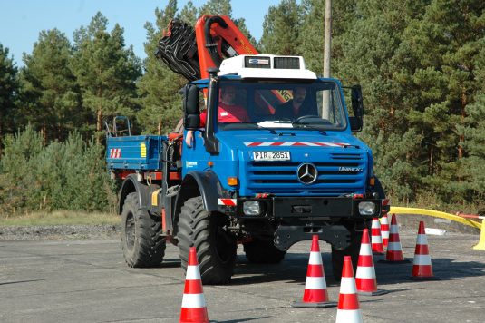 Bei aller Begeisterung für die Technik soll nicht vergessen werden, dass die Einsatzerfolge maßgeblich vom Können der Besatzungen abhängen. Der eigentliche Schwerpunkt der beiden Tage lag in der Aus- und Fortbildung an der neuen Technik. Die einladenden Firmen ermöglichten nicht nur etwa 150 km Geländefahrt pro Fahrzeug sondern packten auch noch zwei Vortragsveranstaltungen dazu. Auf der anderen Seite dankten die eingeladenen Feuerwehrkräfte mit einem überwältigenden Echo. Wurden ursprünglich etwa 300 Teilnehmer erwartet, so meldeten sich 650 Kameraden, von denen am Ende trotz bestem Wetter, Wahlwochenende und chronischer Knappheit an Freizeit bei Feuerwehrleuten etwa 600 den mitunter weiten Weg nach Horstwalde fanden. Garantiert haben umgekehrt auch die Instrukteure und die anderen Aktiven der Ausrichterfirmen sehr viele Ideen und Hinweise aus der Feuerwehrpraxis ihrer Gäste mitnehmen können. Richtig rund wurde die Veranstaltung auch durch Präsentationen von weiteren Ausrüstern wie der Firma EMPL Germany aus Elster und der großzügigen Unterstützung von bereits mit Unimog-Technik ausgerüsteten Landkreisen und Gemeinden, denn keine der kleinen und mittelständischen Firmen kann “mal einfach so” acht Unimog im Wert von über einer Million Euro als Vorführwagen vom Hof nehmen und in Horstwalde bereitstellen. Die weiteste Anreise hatte dabei vermutlich ein blauer U 45000 mit Pritsche, Kranausleger und Werner-Seitenwinde einer Flußmeisterei des Freistaates Sachsen. Allen Sponsoren an dieser Stelle auch vom Förderverein der Verkehrs-Versuchsanlage Horstwalde e. V. einen herzlichen Dank und besuchen Sie uns bald einmal wieder. KU (13.10.2009)